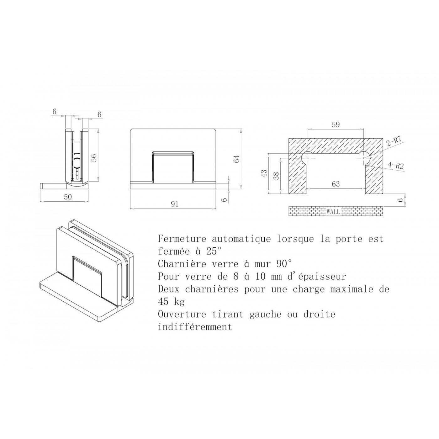 Poids maximum de la porte : 45Kgs avec 2 charnières